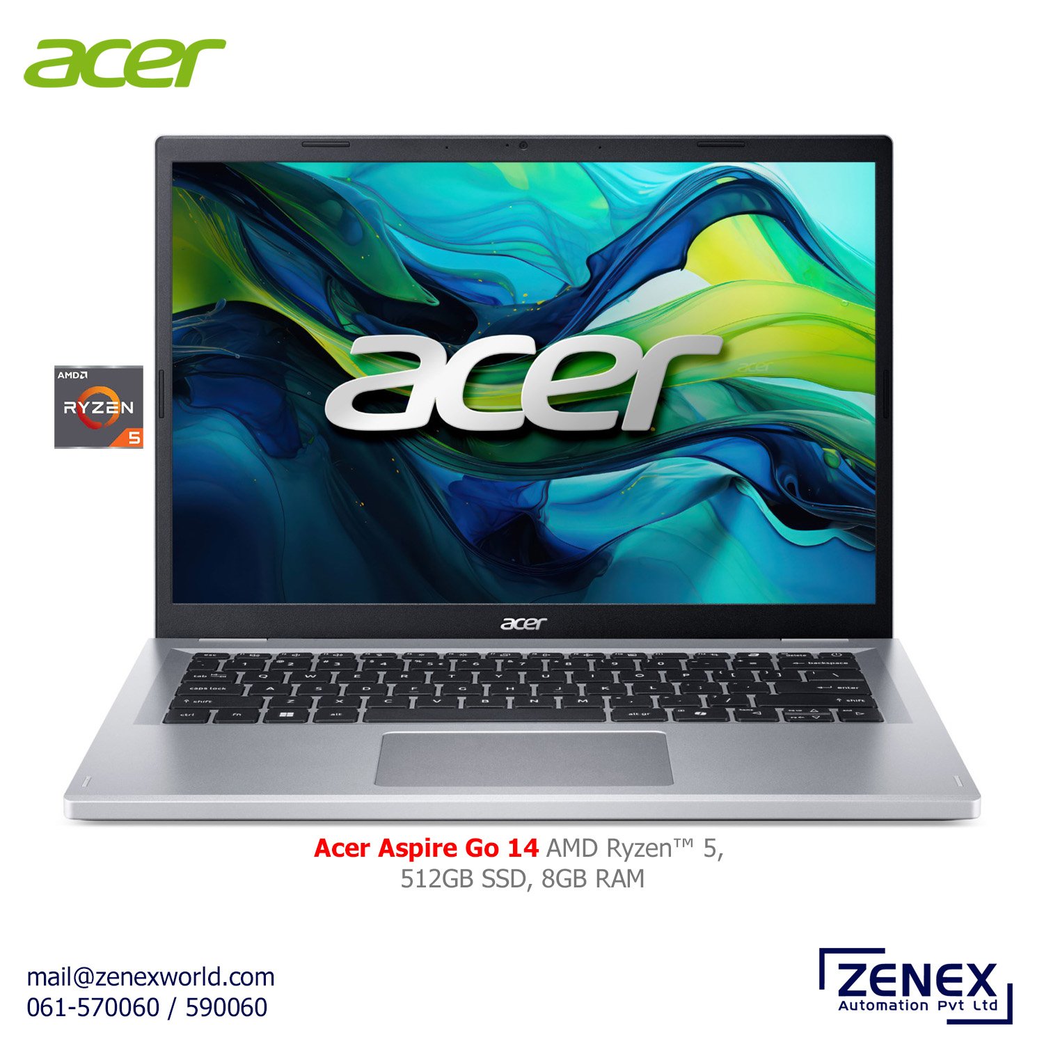 This is Acer Aspire Go 14 Laptop which have AMD Ryzen™ 5 7520U Series Processor with AMD Radeon Graphics, plus plenty of memory and storage. So this laptop is also compact and light which is going to be a best deal for Office and Students.
