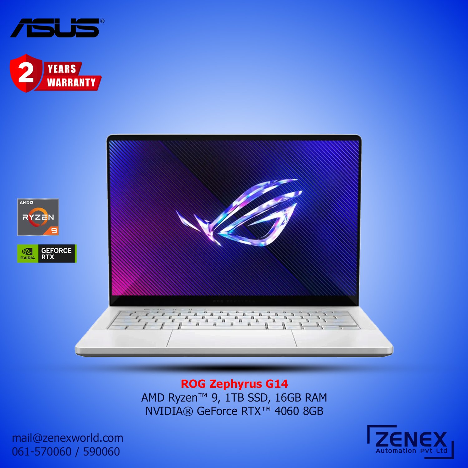 Thinner and sleeker than ever before, the Zephyrus G14 features 1.59cm CNC Aluminum Chassis. Zephyrus G14 features AMD Ryzen™ 9 8945HS processor and NVIDIA® GeForce RTX™ 4060 with AI accelerators. Zephyrus G14 features ROG Nebula Display.